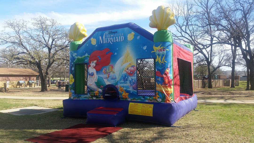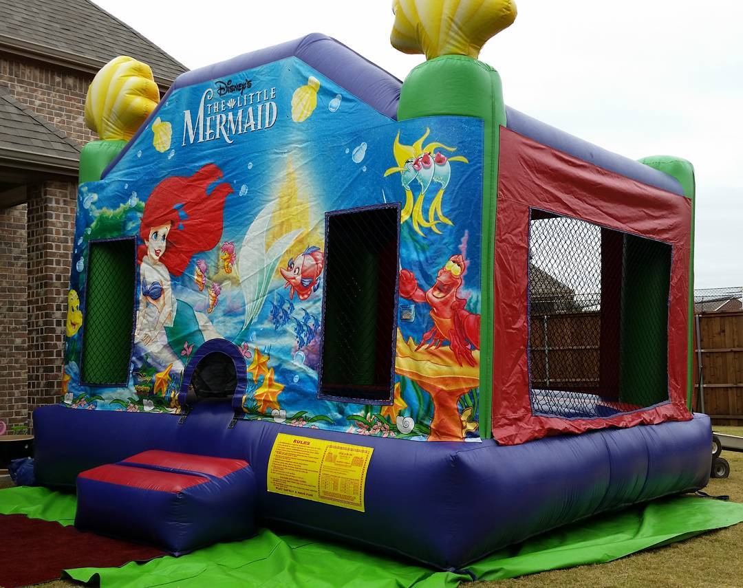 Get ready for an underwater adventure with Ariel, Flounder, and Sebastian with our Little Mermaid Bounce House rental. Enjoy the beautiful aquatic scene in front of Triton’s castle while your little mermaid princesses and princes have an aquatic jumping adventure. Try renting our Cotton Candy Machine and set up an activity table where your ocean lovers can mold the cotton candy into fun ocean-inspired shapes like shells, starfish, coral, and more. If you want more information on how to get this fun Little Mermaid bounce house rental, fill out the form on this page or call us at 972-539-5867 we’ll get back to you soon!
