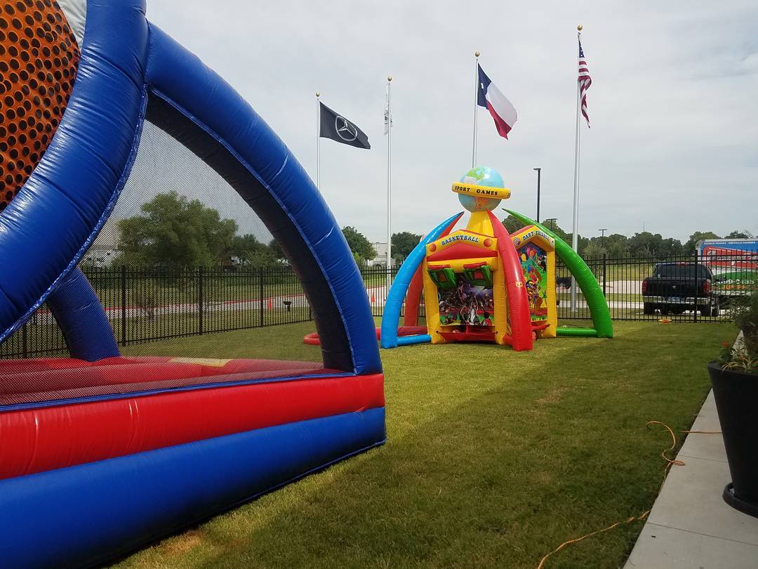 Encourage team spirit and friendly competition as children play their favorite game simultaneously and facilitate variety as participants – individuals or teams – have the chance to play each sport. This colorful inflatable sports game adds great value to a special event, fundraiser, church social, community event, gymnastics club or a backyard barbeque.