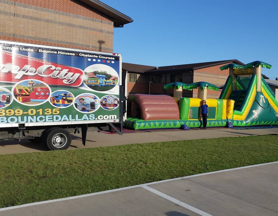 Tropical Obstacle where you climb up under and through obstacle then slide down the full size slide! Ride the party! Go places, make friends, jump climb and slide all in one unit! Cool New 3 in 1, 4N1, and 5N1 Combo Slides! Jump, Climb and Slide, wet or dry! Large, long inflated bounce and slide!