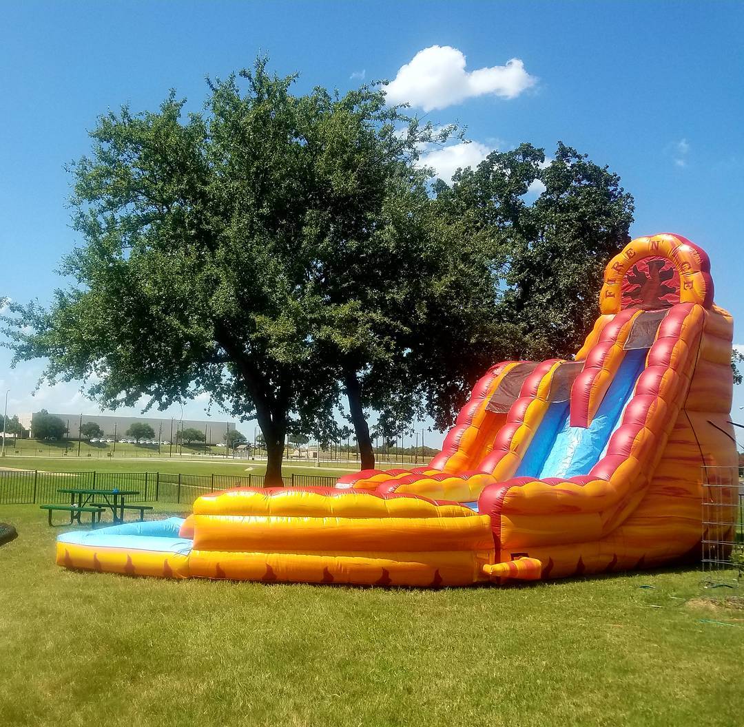 Fire N Ice Dual Lane 2 story Water Slide – Beat the Texas heat with this big red water slide. JumpHouses.com rents this awesome water slide to cities in the Dallas area such as Dallas, Plano, Frisco, Allen, Denton, Flower Mound, Lewisville and all areas in between. This is the coolest 2 story, 2 lane water slide in the metro area. Brand new and ready for your child’s party or event. The Fire N Ice Two Lane Water Slide lets two kids enjoy it simultaneously leading to races down the slide and a day full of fun. Rent one for your party, celebration, or big event today!